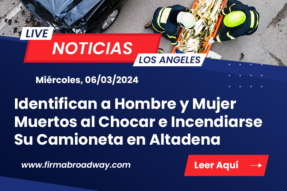 Altadena, Condado de Los Angeles – Un hombre y una mujer murieron temprano el martes en un accidente de SUV en llamas en Altadena, según informaron las autoridades.